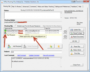If an offsite approver address is found on the routing slip, then a special footer will be placed on each message body of all routed messages for this routing process. This footer message will have instructions for downstream recipients telling them that they simply need to forward this message to the designated recipient (which will be specified in the footer), and they simply need to type “orp approve”, or “orpapprove”, or “orp_approve” in the message if they approve this message. When a message with one of these encoded bodies is forwarded the specified recipient will be given a special instruction popup when he/she clicks the message inside of outlook (for this to work, ORP outlook needs to be installed on this computer with the ORP MAC and Mobile module present). The user (likely this will normally be the initiator of the routing process) will then choose to approve the message on behalf of the MAC or mobile user and from there, routing will continue as normal. A special status icon will be shown in the main grid for any messages approved by a MAC or mobile user in this manner.